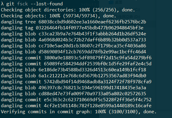 然后 git show 对应的 id,查看是不是自己需要恢复的文件内容,尽量从下往上找。